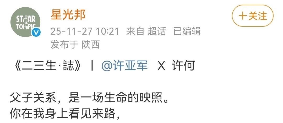 17. 在许何与父亲许亚军联合拍摄杂志大片后不久,父子同框引发网络热议。有人认为这是星二代正式亮相的信号,毕竟他毕业于顶尖艺术院校,专业对口,此次与父亲合作,似乎预示着即将踏入演艺圈。