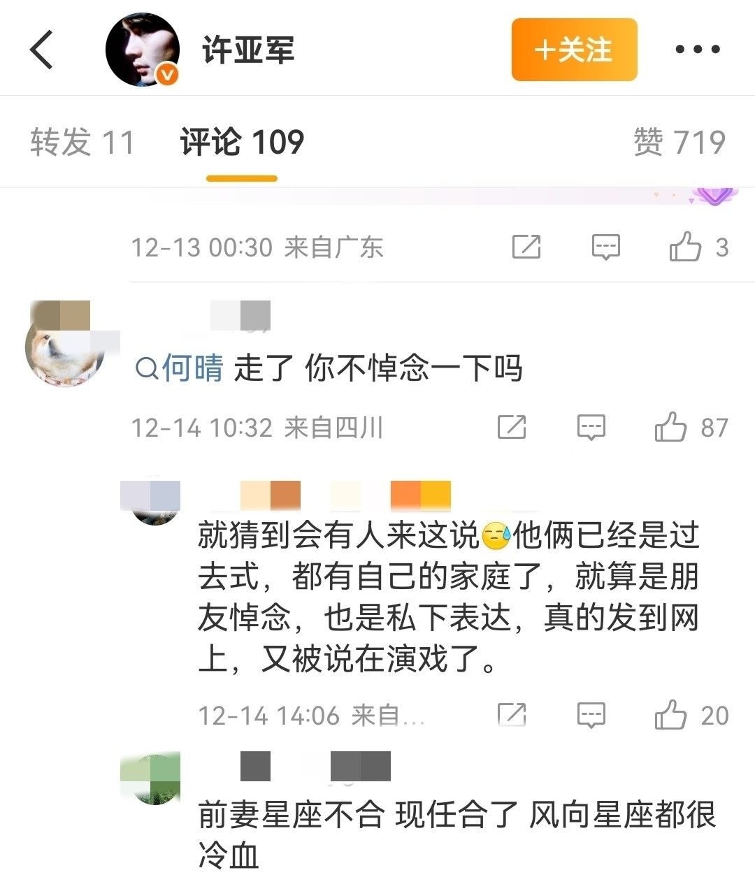 9. 在公众印象中,许亚军的舆论评价一直存在争议。前妻何晴病逝后,有网友质疑他在社交媒体上未公开悼念,认为此举冷漠,引发部分观众失望情绪。